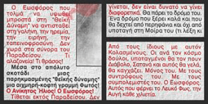 Αυτός που οι ανά τον κόσμο δούλοι, υποταγμένοι θα τον πουν Διάβολο, Σατανά και αυτός θα γελά, θα καγχάζει. Μόνος του. Με τους συντρόφους του. Με τους συμπολεμιστές του!