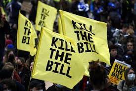 Το νομοσχέδιο περί Αστυνομίας, Εγκλήματος, Καταδίκης και Δικαστηρίων προβλέπει την αυστηροποίηση των μέτρων που μπορούν να λάβουν αστυνομικοί προκειμένου να διαλύσουν διαδηλώσεις, μεταξύ άλλων να επιβάλουν χρονικά όρια και όρια θορύβου. Οι επικριτές του νομοσχεδίου φοβούνται ότι αυτό θα χρησιμοποιηθεί για την καταστολή κάθε διαφωνίας.