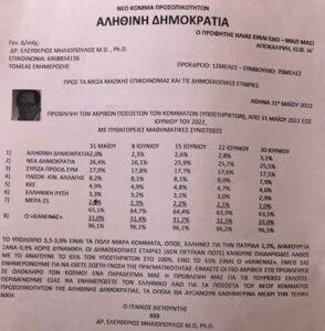 Μια τέτοια δημοσκοπική ανάλυση έφτασε στα χέρια μου και την οποία ανακοινώνει το “Νέο Κόμμα Προσωπικοτήτων – Αληθινή Δημοκρατία”! με Γενικό Διευθυντή τον Dr Ελευθέριο Μηλιόπουλο, M.D., ph. D.