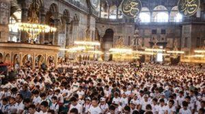 Όμως την ίδια αυτή ώρα που η Ελλάδα γεμίζει από ορκισμένους εχθρούς της, την ίδια ώρα που ο Τούρκος Σουλτάνος Ρ. Τ. Ερντογάν δουλεύει μεθοδικά σκορπώντας στην ελληνική επικράτεια “Δούρειους Ίππους” αλώσεώς της, με τζιχαντιστές και πράκτορες, την ίδια αυτή ώρα στο λίκνο της Ορθοδοξίας την Αγιά Σοφιά μας στην Κωνσταντινούπολη (σ.σ. Ιστανμπούλ κατά τον Κυριάκο Μητσοτάκη), ο Τούρκος Σουλτάνος συγκεντρώνει χιλιάδες παιδιά, τα οποία φανατισμένα φωνάζουν το γνωστό ισλαμιστικό σύνθημα “Αλλάχου Άκμπαρ”!