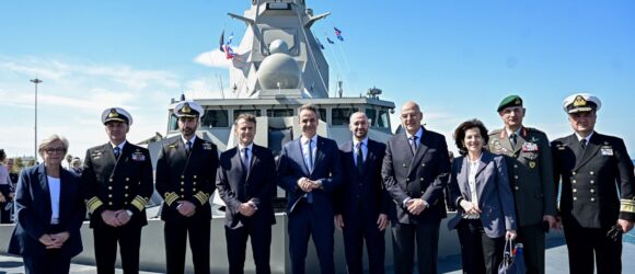 Αυτή την ώρα, ο Κυριάκος Μητσοτάκης και ο Γάλλος ομόλογός του βρίσκονται στο λιμάνι του Πειραιά, όπου ξεναγούνται στη φρεγάτα «Κίμων», την πρώτη από τις υπερσύγχρονες γαλλικές φρεγάτες τύπου Belharra που εντάχθηκε στη δύναμη του Πολεμικού Ναυτικού.