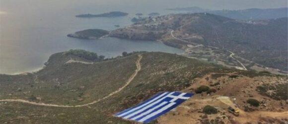 Οινούσσες – Τοποθέτησαν τεράστια ελληνική Σημαία ως απάντηση στην «ενόχληση» του Ακάρ