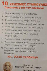 Σε όλα τα καταστήματα ΙΚΑ, ΚΕΠ, Εκκλησιές του Δήμου, πρακτορεία ΟΠΑΠ, αλλά και σε άλλους δημόσιους χώρους, υπήρχαν οι 10 χρήσιμες συμβουλές προστασίας των πολιτών από τον καύσωνα!