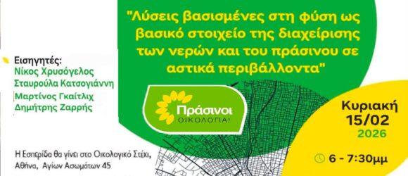 ΠΡΑΣΙΝΟΙ Αλληλεγγύη – Εκδήλωση: Λύσεις βασισμένες στη φύση ως βασικό στοιχείο διαχείρισης των νερών και του πράσινου σε αστικά περιβάλλοντα – ΠΡΑΣΙΝΟΙ Αλληλεγγύη